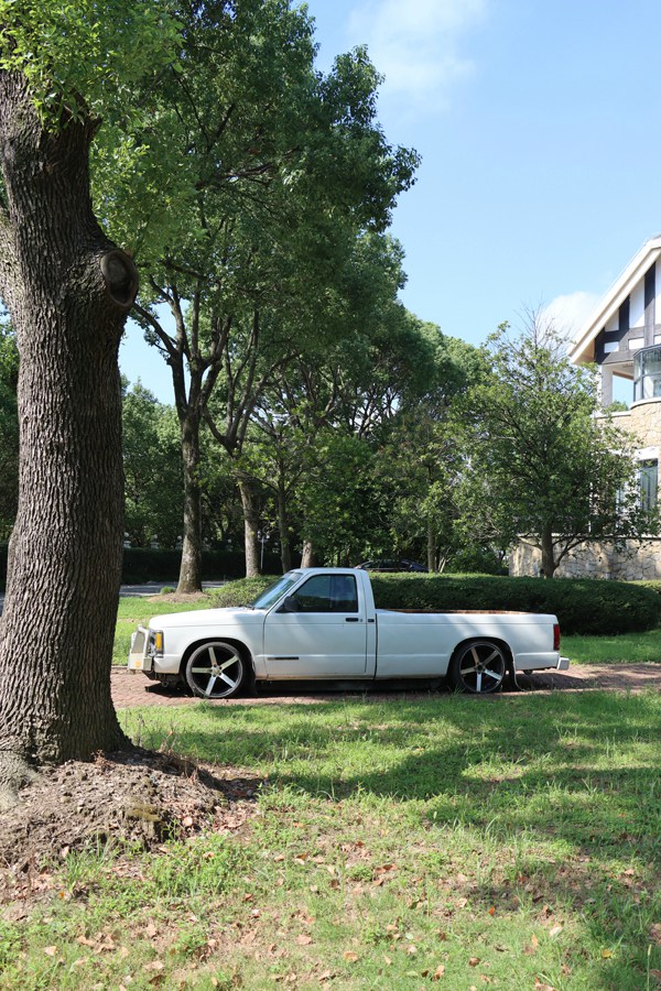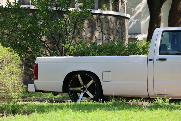 The official website of AIRBFT air suspension shares with you:1991 GMC S15 Single row pickup truck Airride“Vintage Display”Information,This is a 1991 GMC single row pickup truck that works on a farm and has been modified with the AIRBFT Airride kit. The chassis has been lowered to the ground, giving it a cool look. The rear compartment is also decorated with wooden strips, giving it a vintage feel.
